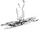 fósforo en la apertura, sobre la yesca, una vez que encendió se colocan ramas