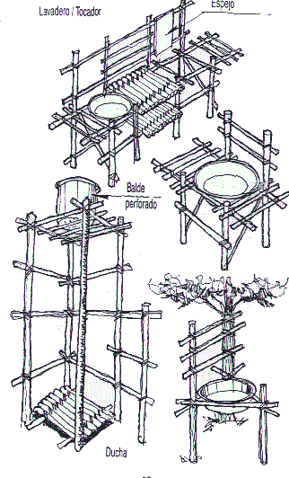 También para campamentos largos se puede hacer una ducha, como la del dibujo,